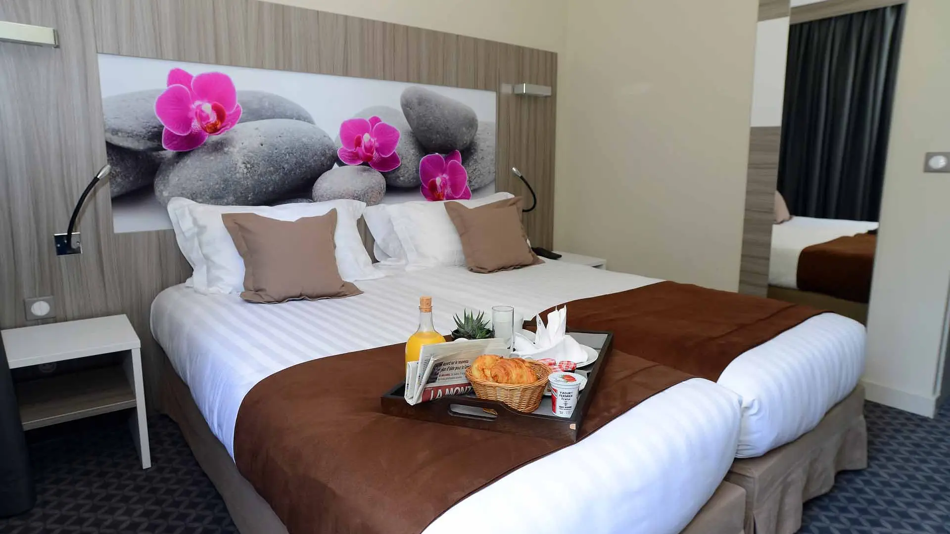 Le Parc de Geoffroy is in France's cutlery capital, Thiers, and just 2 km from exit 29 of the A89 motorway. Set in wonderful grounds featuring ancient trees, le Parc de Geoffroy inspires peace and hospitality. Just a few minutes from the historic centre of Thiers, the hotel will make for the ideal departure point for discovering the town's rich and amazing industrial and architectural heritage. All the rooms have been tastefully redesigned to be even more comfortable, with elegant decor featuring soothing, light-coloured wood, plus views over the garden. Massage service can be booked. Reception open 24 hours a day, lounge and left luggage.