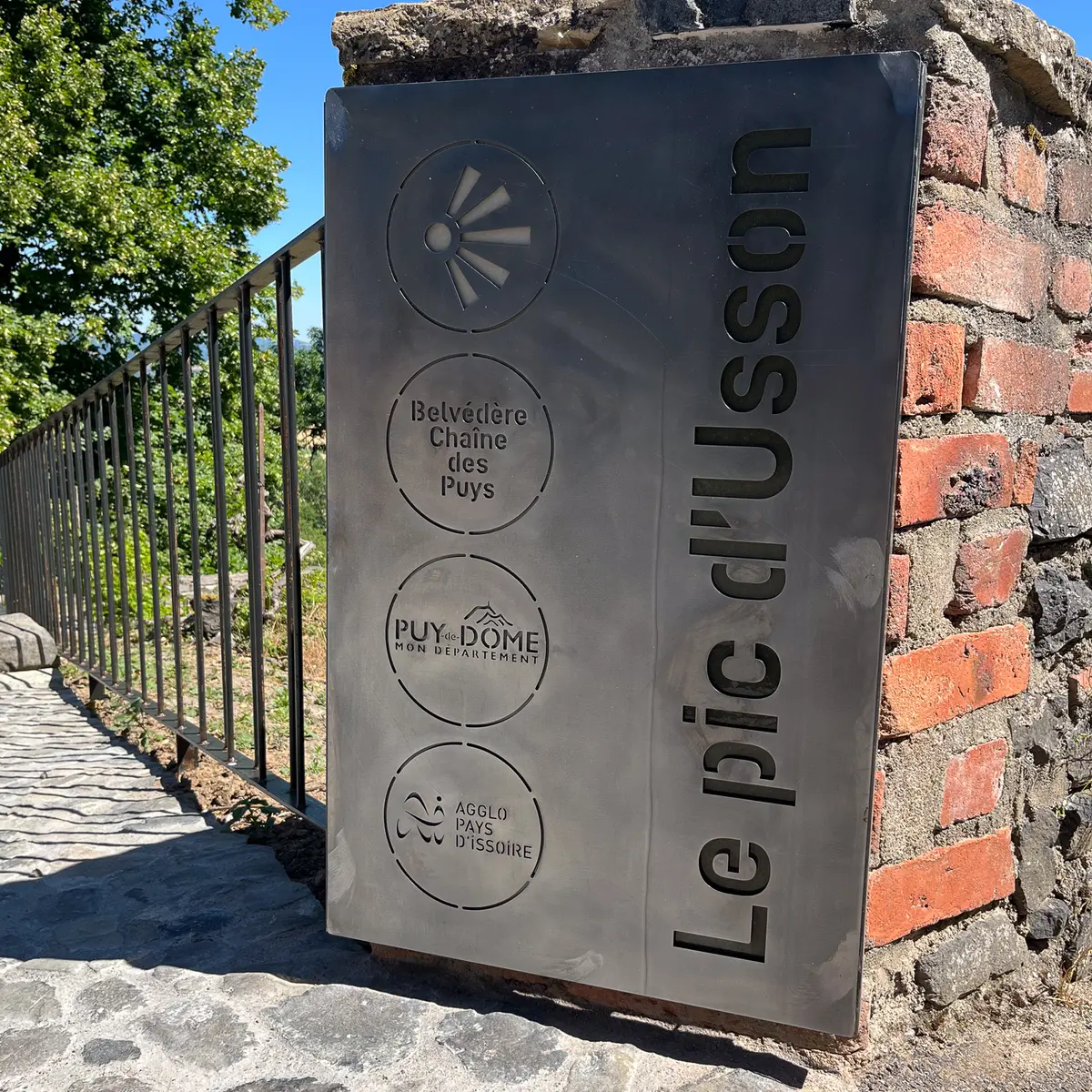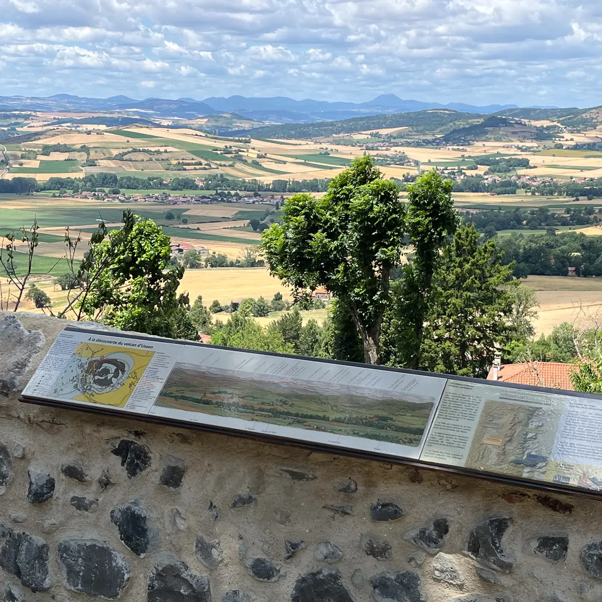 Le belvédère d’Usson offre une vue imprenable sur la Chaîne des Puys - Faille de Limagne, site inscrit au patrimoine mondial de l’UNESCO. La table d'orientation en lave émaillée vous permettra de découvrir le patrimoine géologique du territoire