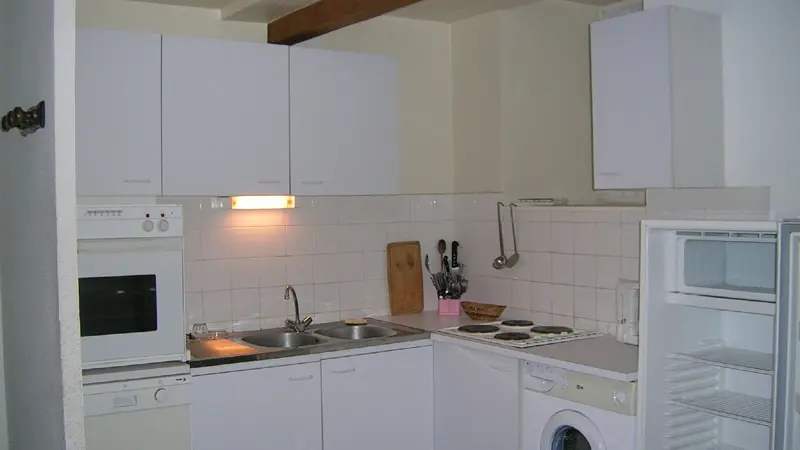 Maison de village mitoyenne en pierre dans un bourg médiéval comprenant 3 gîtes. 1er et 2ème étage; Pour celui-ci ,salle de séjour, coin-cuisine; 3 chambres : 1 ch avec lit 140, 1 ch avec 2 lits 90 superposés, 1 ch avec 2 lits superposés; salle de bain; 2 wc. Draps fournis. TV écran plat et lecteur DVD. Cour commune fermée. Jardin à proximité immédiate non attenant fermé, commun avec barbecue. Salle de jeux commune aux 3 gîtes. Chauffage électrique selon consommation. Superficie : 92 m2.