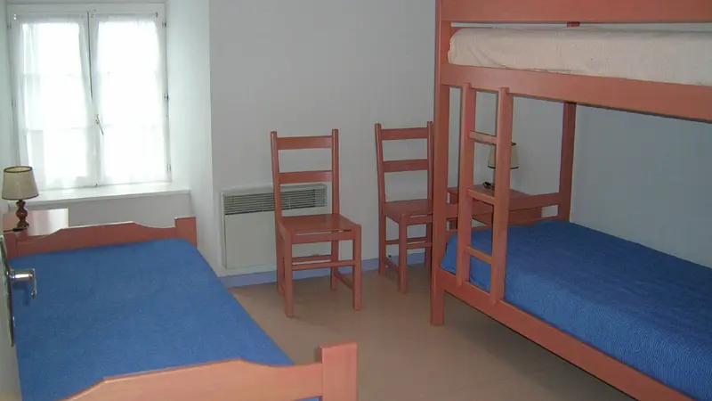 Maison de village mitoyenne en pierre dans un bourg médiéval comprenant 3 gîtes. 1er et 2ème étage; salle de séjour, coin-cuisine; 3 chambres : 1 ch avec lit 140, 1 ch avec 3 lits 90 dont 2 superposés; salle de bain; 2 wc. Draps fournis. TV écran plat et lecteur DVD. Cour commune fermée. Jardin à proximité immédiate non attenant fermé, commun avec barbecue. Salle de jeux commune aux 3 gîtes. Chauffage électrique selon consommation. Superficie : 70 m2.