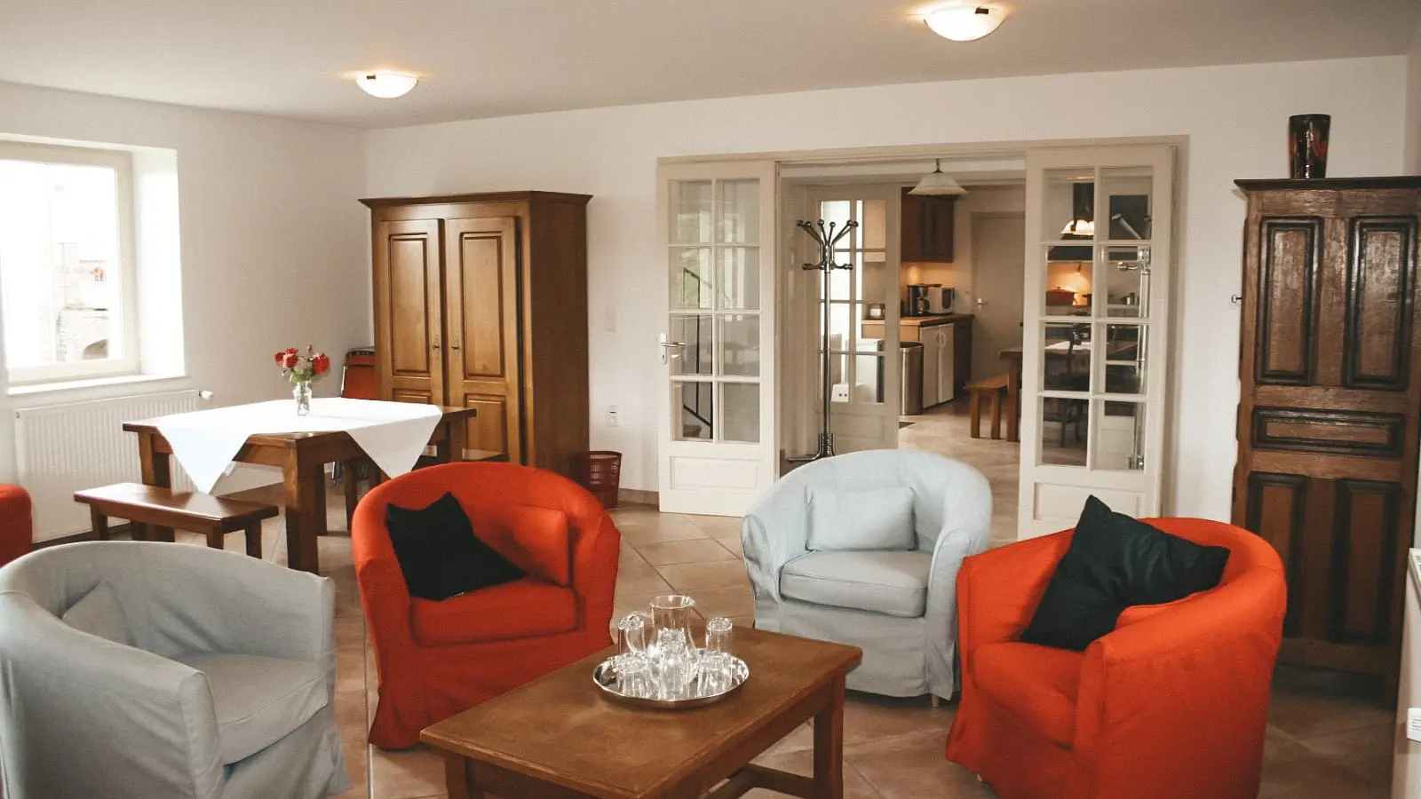 Disposant de deux pièces à vivre et de 5 chambres, ce grand gîte est parfaitement adapté au séjour de plusieurs familles avec leurs enfants ou d'un groupe de 9 personnes.