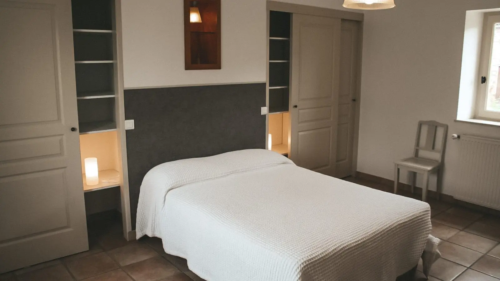 1 chambre avec 1 lit 90x190 et (1 lit d'enfant 80x165 en supplément)