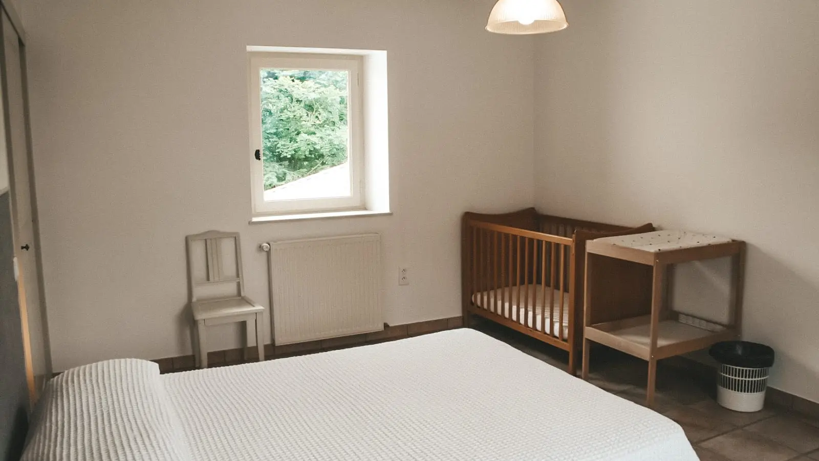 1 chambre avec 1 lit 140x190, (1 canapé-lit 80x190 en supplément) et un lit bébé avec table à langer
