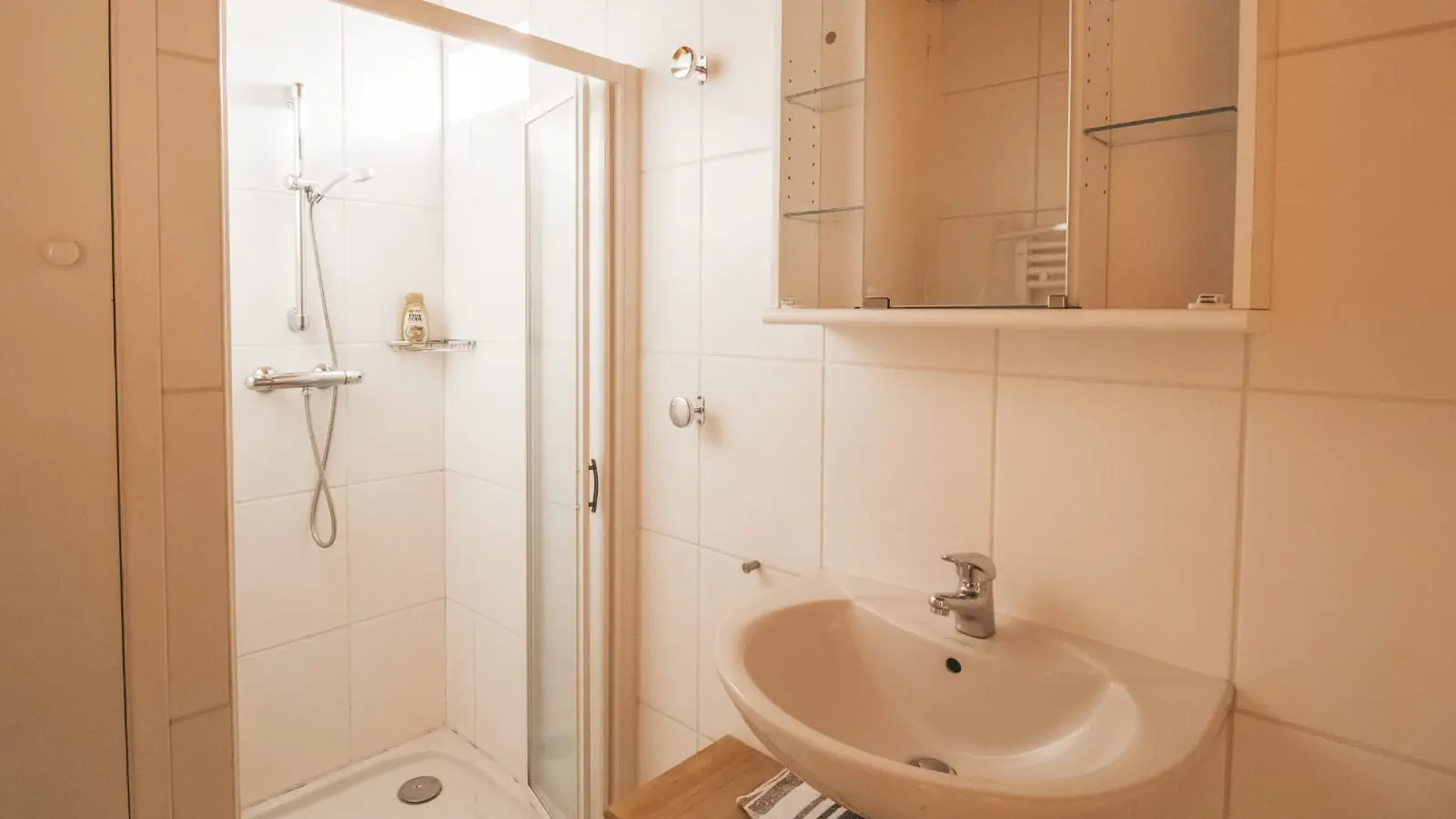 à l'étage 3 chambres : 1 ch lit double 140cm, 1 ch avec 2 lits simples de 90x190cm et 1 ch avec 2 lits simples de 80x190cm. et une salle de douche avec 1 lavabo et 1 WC