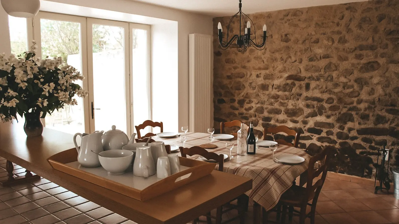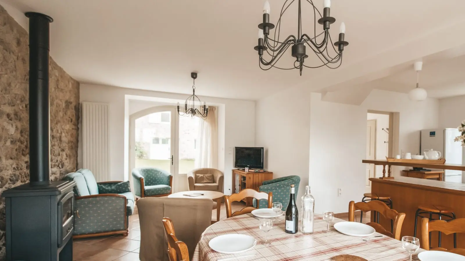 Le gîte MAJES a été entièrement restauré en préservant son caractère rustique : mur en pierres apparentes, poêle à bois fonctionnel. Il est doté du chauffage central à granulés de bois.