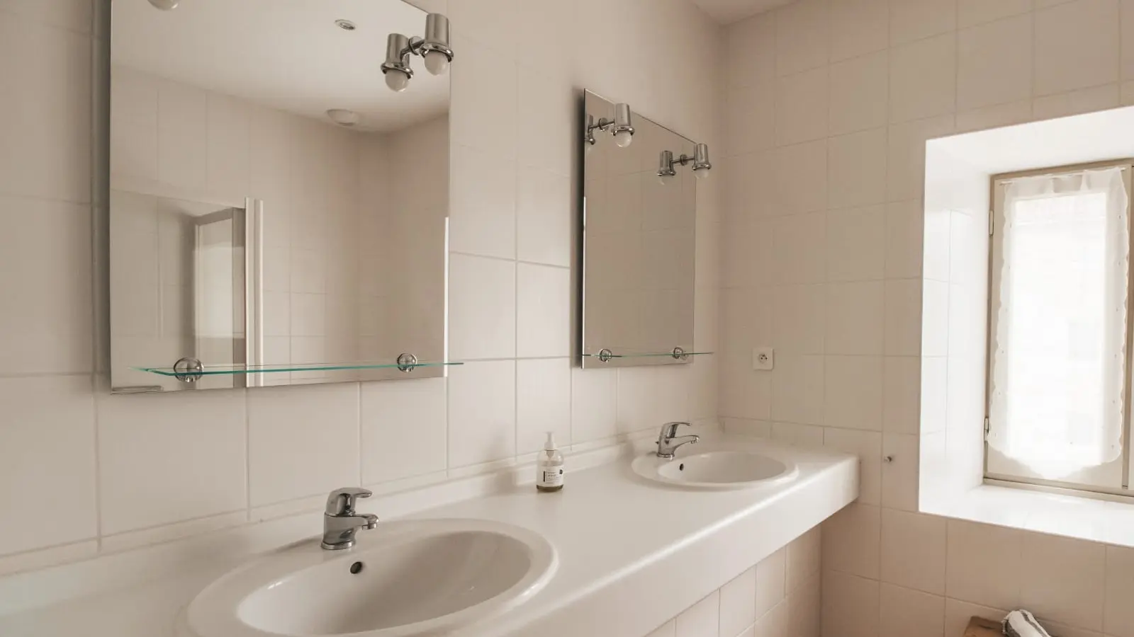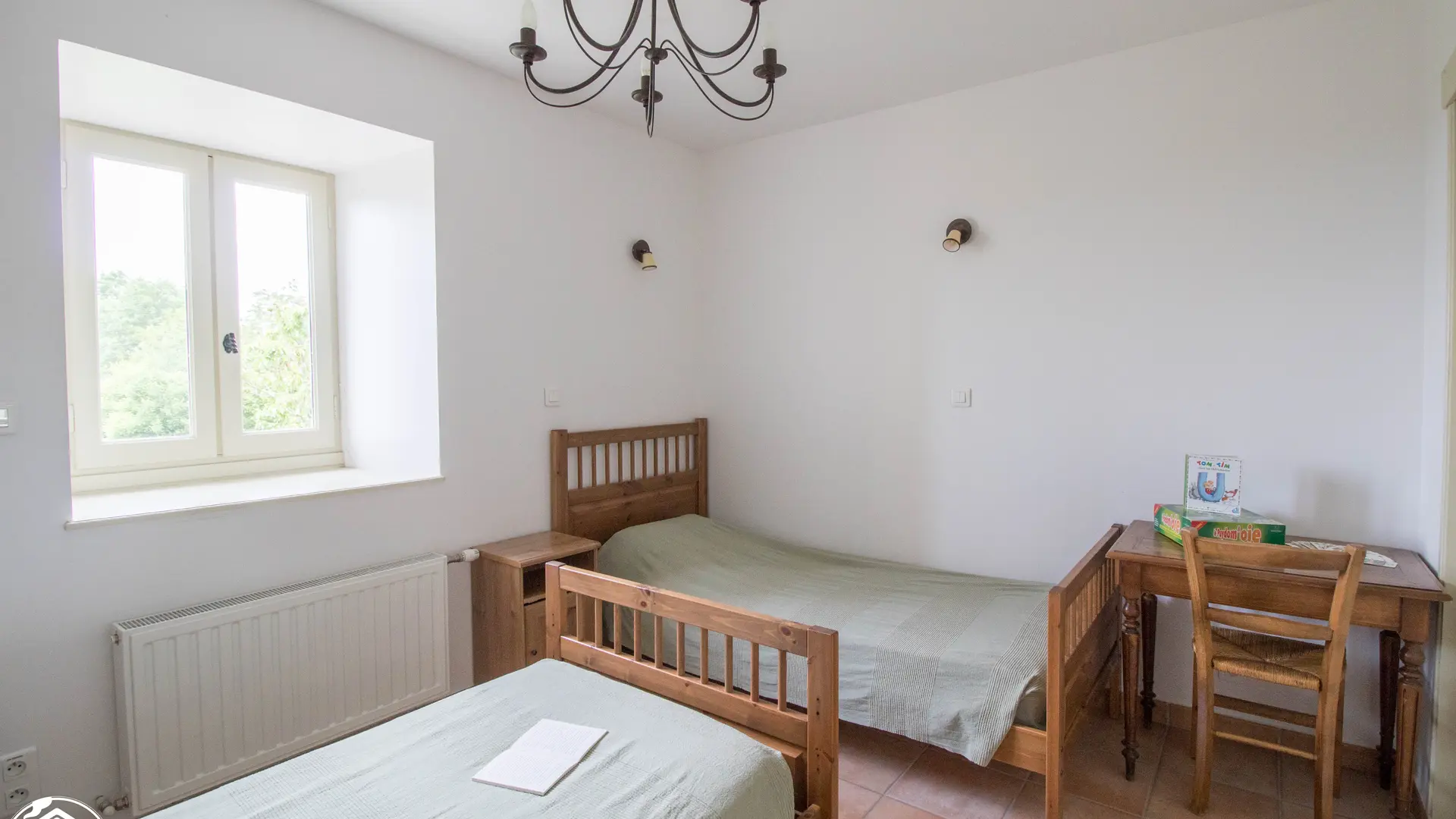 au 1er étage : 1 chambre lit double en 140cm, 2 chambres 2x2 lits simples en 90x190cm et une salle de douche avec wc et 2 lavabos.
