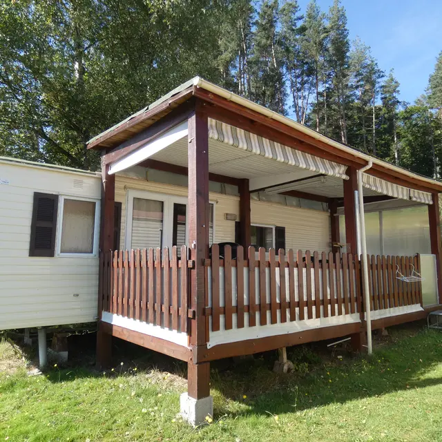 Niché dans la verdure, ce camping familial, véritable havre de calme et de repos vous propose de profiter des joies du camping confortablement installé dans ce mobil-home tout équipé et sa terrasse en bois, parfaite pour des moments de partage.