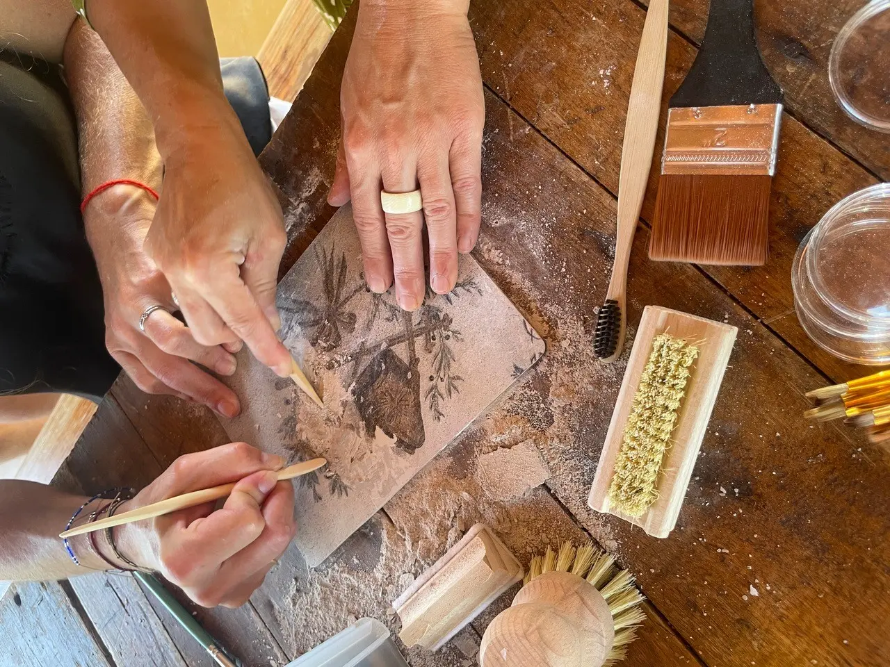 Atelier en famille de découverte de l'église de Glaine-Montaigut, de son décor peint et de sa restauration. A l'issue de la visite, atelier pratique de découverte de peinture et de technique de restauration.