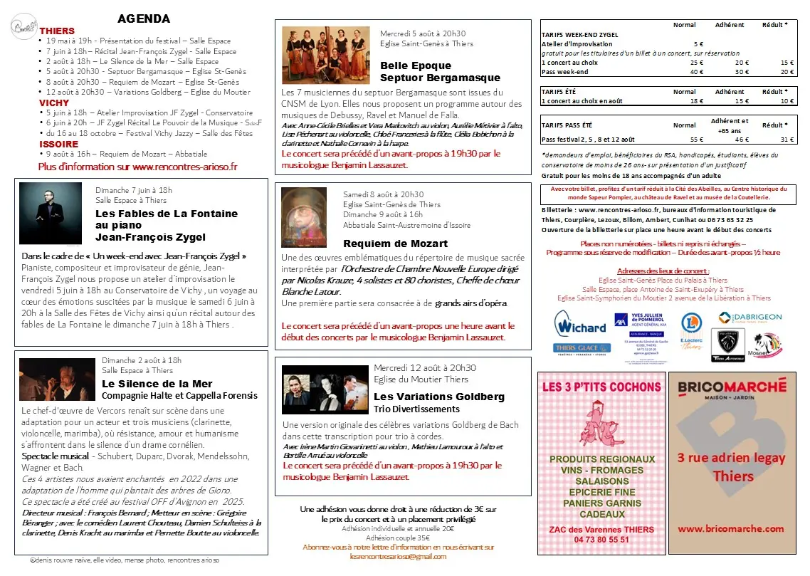 Réservation sur notre site internet http://www.rencontres-arioso.fr/reserver/ou par téléphone au 06 73 63 32 25
