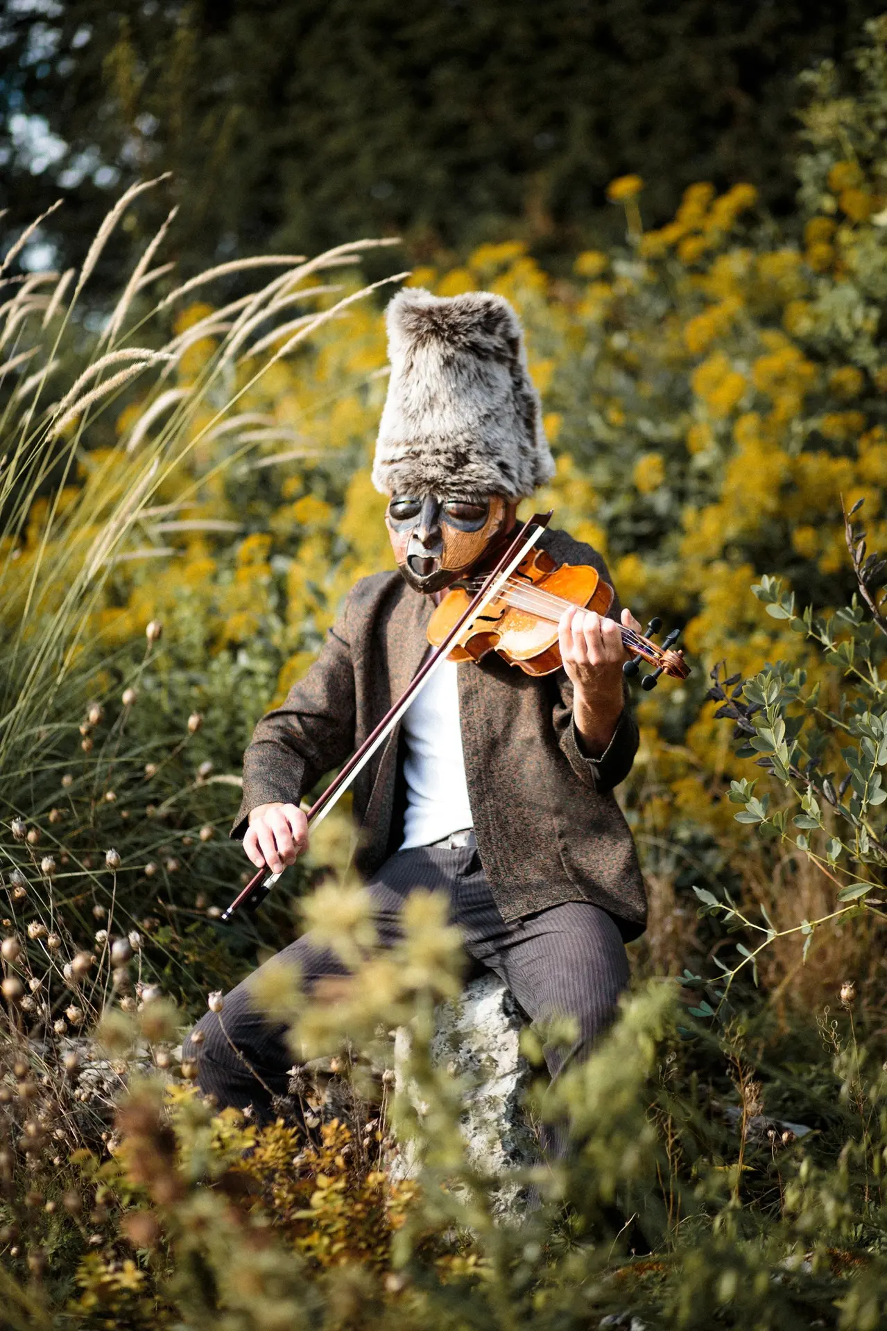 On ne sait pas très bien d'où vient RédèR Nouhaj, homme de plusieurs folklores qui manie son violon comme le bûcheron sa hache : avec précision, humilité et gratitude pour l'arbre coupé. Du Caucase où il fût plongé pendant un temps certain, le mix des cultures et la mélodie brute. Des plaines bulgares traversées par les transhumances, les folles rythmiques et les costumes à poils longs. De son enfance, la joie des objets sonores improbables.