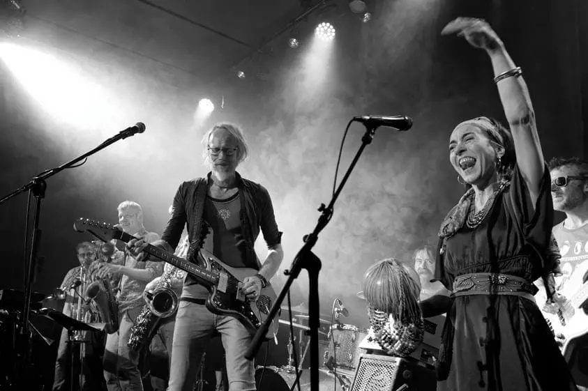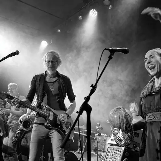 Avec l’ arrivée de Jéremie et de Zoul (sax ténor, trombone), de Vincent (percussions) et de Vincent (claviers), la grande famille modulable d’ Ozengué s’agrandit ! Batterie, basse, 2 guitares, clavier, un ou deux percussionnistes congas, choeurs Laeti, 4 cuivres (sax baryon, sax ténor, trombone et trompette) et dégage une belle énergie pour interpréter un afrobeat survitaminé !