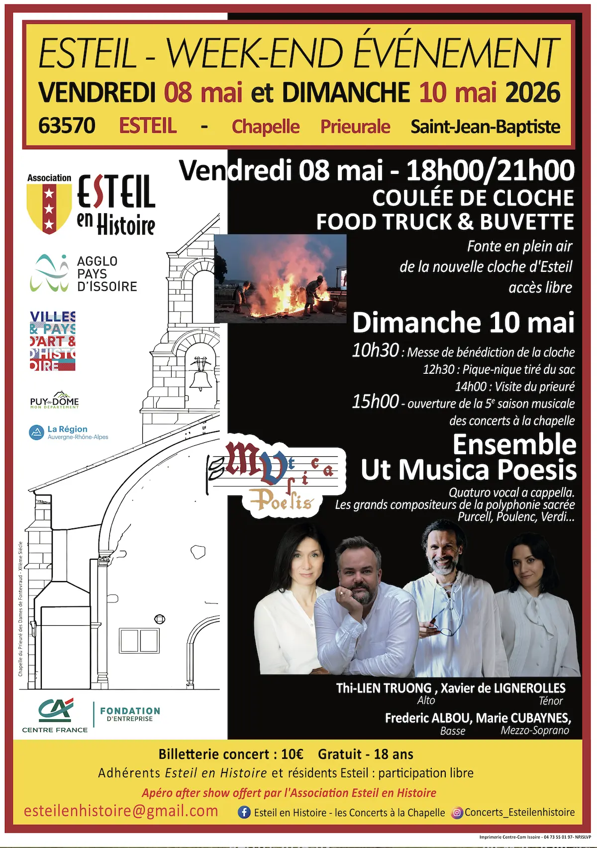 Week-end événement avec le coulage en plein air d'une nouvelle cloche et sa bénédiction. Événement rare et unique avec le coulage d'une cloche en fusion avec foodtruck et buvette. Accès libre avec parking à Esteil.