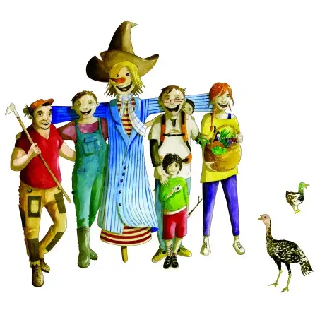 Suivez l’épouvantail, cette sympathique mascotte, qui vous amène sans encombre jusqu’aux fermes ouvertes et accueillantes.