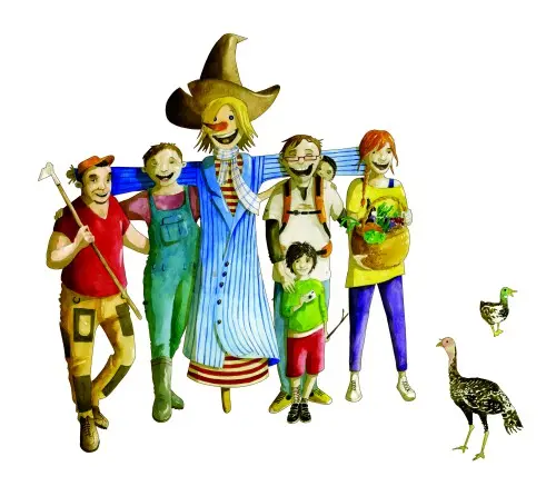 Suivez l’épouvantail, cette sympathique mascotte, qui vous amène sans encombre jusqu’aux fermes ouvertes et accueillantes.