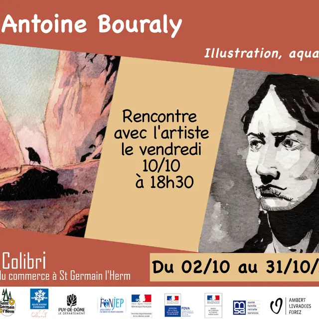 Exposition d'aquarelles, de lavis à l'encre et de fusain au travers de paysages, de faits historiques, de portraits féminins issus de la littérature et d'autres sujets divers et variés.