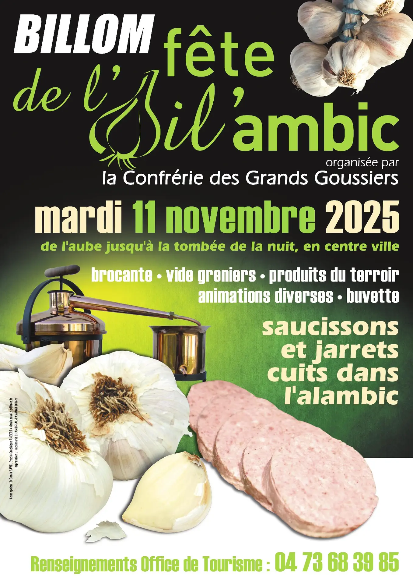 Saucissons et jarrets cuits dans l'alambic. Animations. Buvette