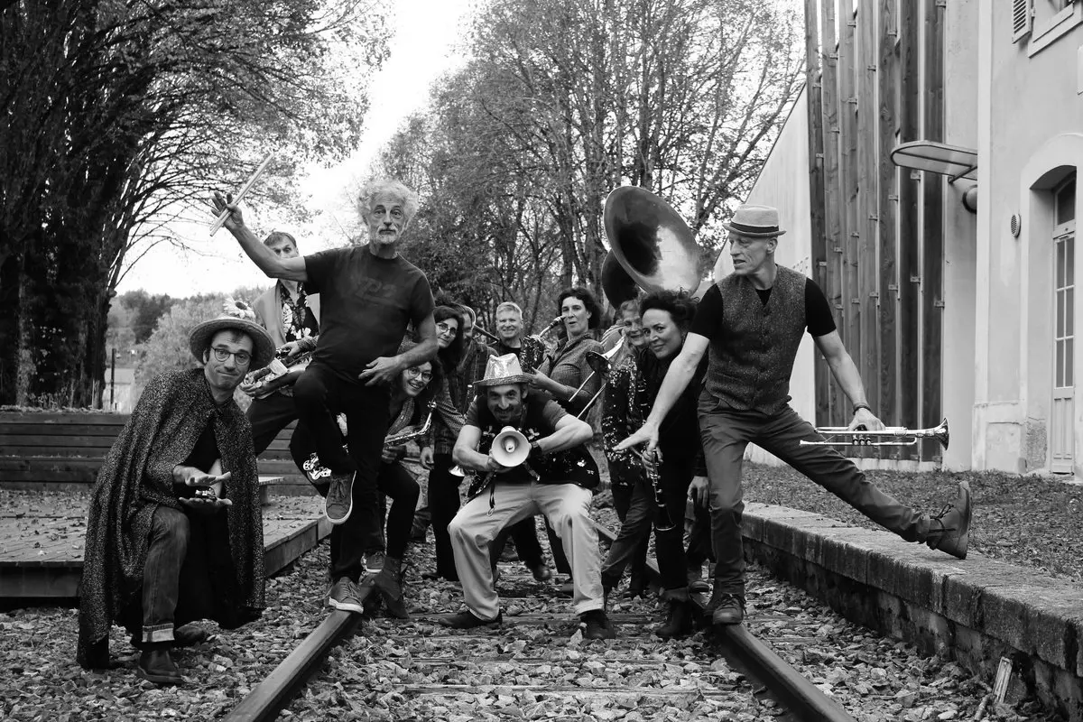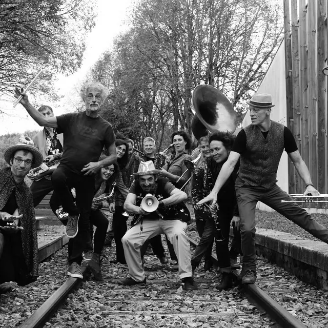 Le PLOF est une fanfare joyeuse, un impossible regroupement d'une dizaine de musiciens aux parcours atypiques qui se retrouvent pour jouer. Quelques trompettes, trombones, clarinettes, percussions, une batterie, un soubassophone, un banjo....Le PLOF se joue de tout, du funk au traditionnel pourvu qu'on danse et qu'on s'amuse !