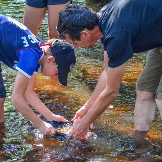 Les pieds dans l’eau, vous recherchez des minéraux semi-précieux cachés dans la rivière, à la manière des chercheurs d’or.