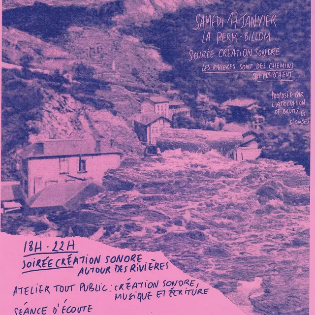 Soirée création sonore autour de la Dore et de la Durolle. Au programme atelier tous publics, séance d'écoute et performance sonore mêlant archives, récits et musique.