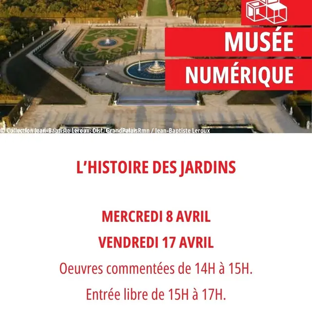 Découvrez une petite histoire de l'évolution des jardins de l'époque médiévale à nos jours. Oeuvres commentées de 14h à 15h. Entrée libre de 15h à 17h.
