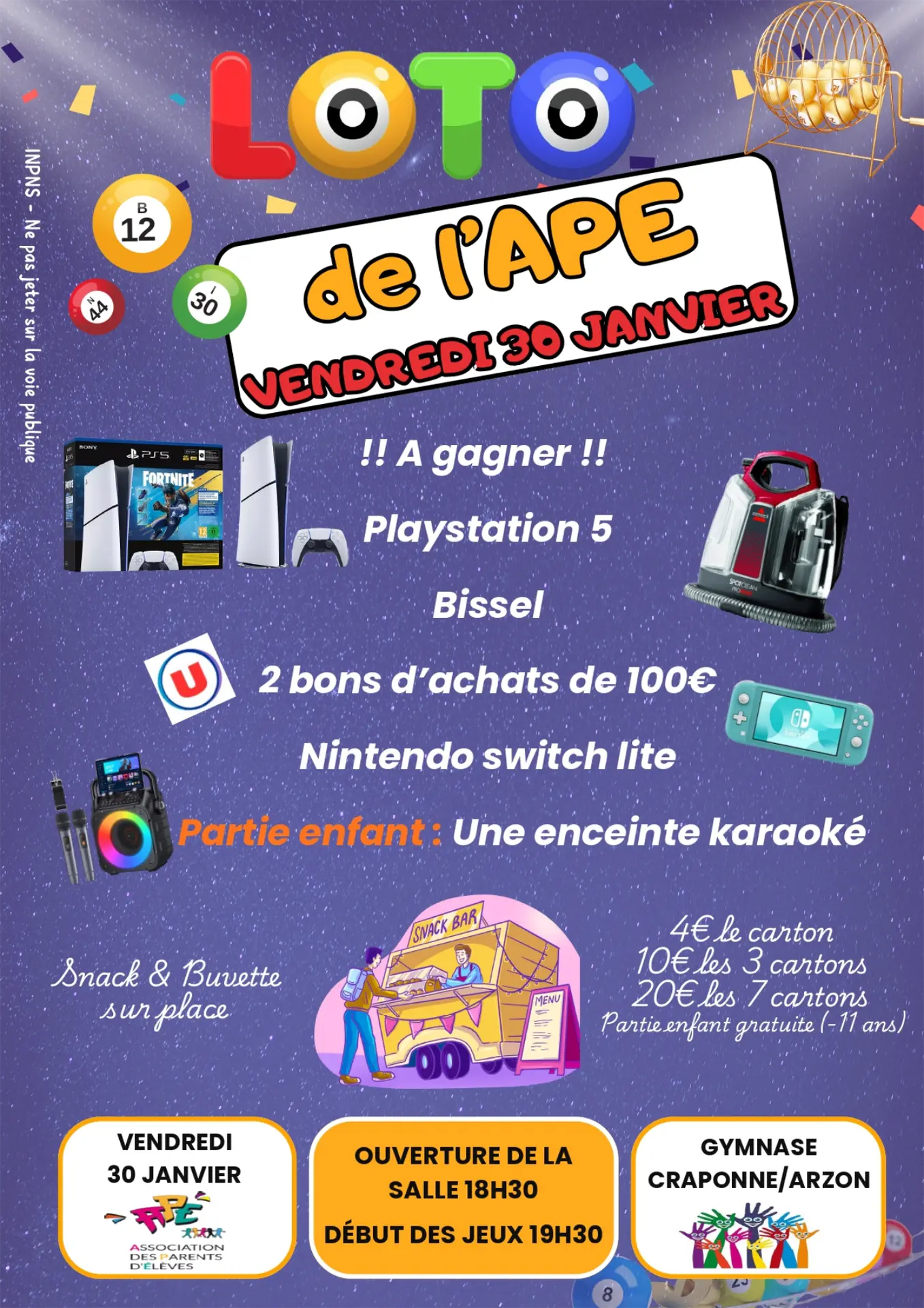 De nombreux lots sont à gagner au loto de l'APE des écoles publiques : Playstation 5, bons d’achats, Nintendo Switch lite, enceinte karaoké…