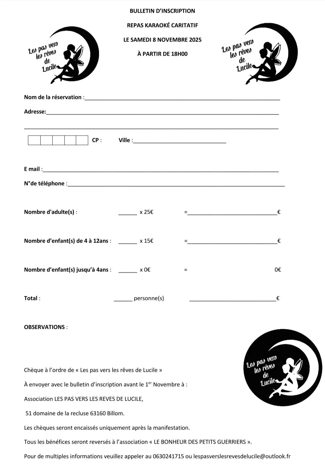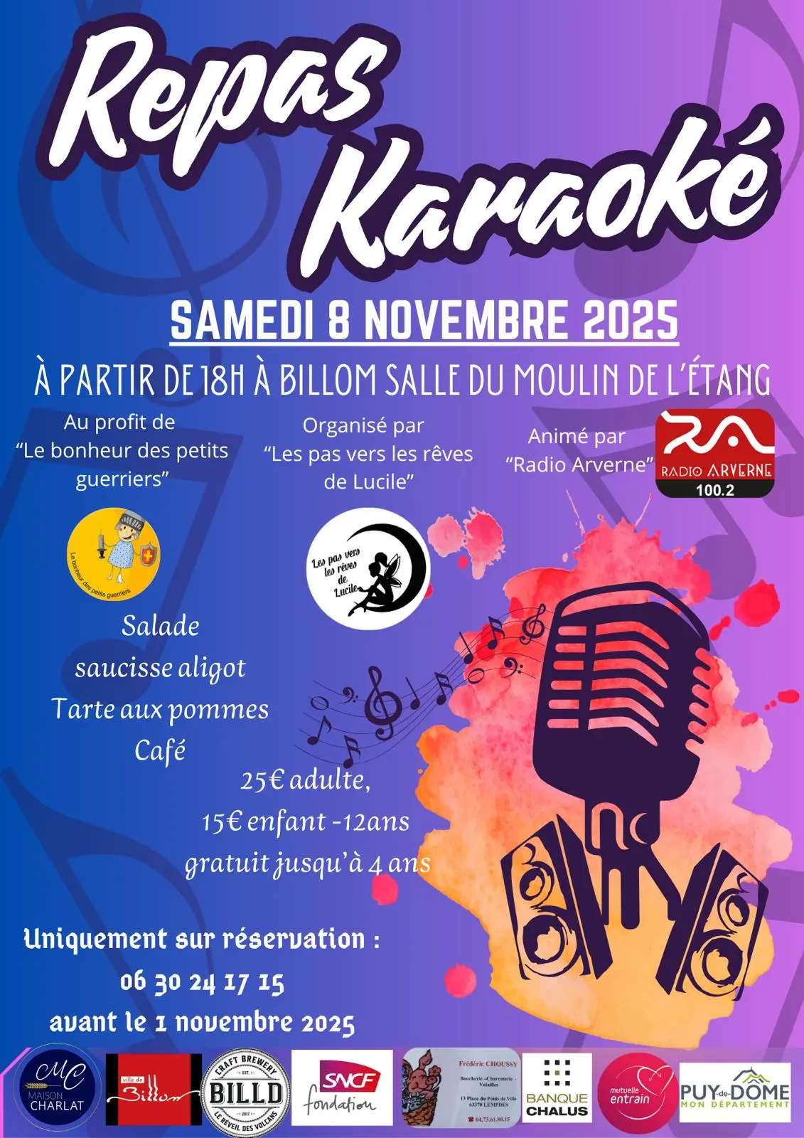 Repas karaoké caritatif. Sur réservation avant le 1er nov