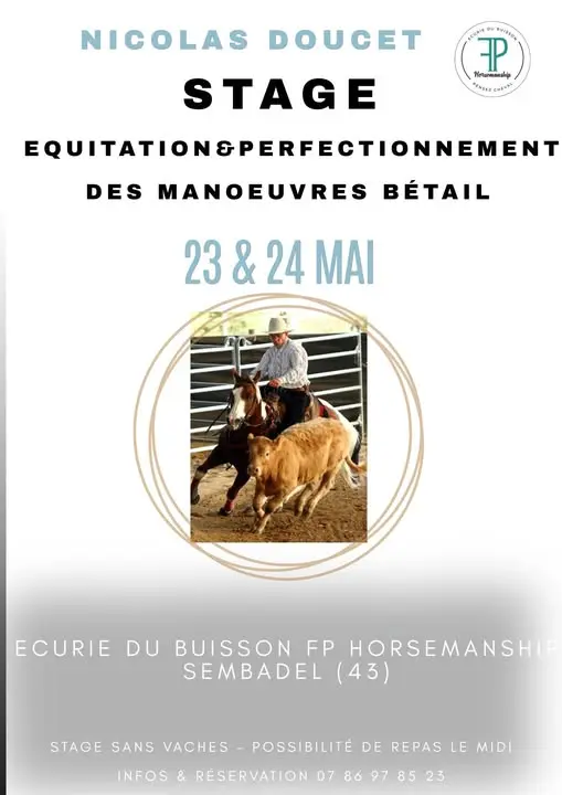 Stage pour le perfectionnement des manœuvres du bétail (sans vache) avec possibilité de repas le midi, places limitées sur inscription auprès de Nicolas Doucet : 07 86 97 85 23