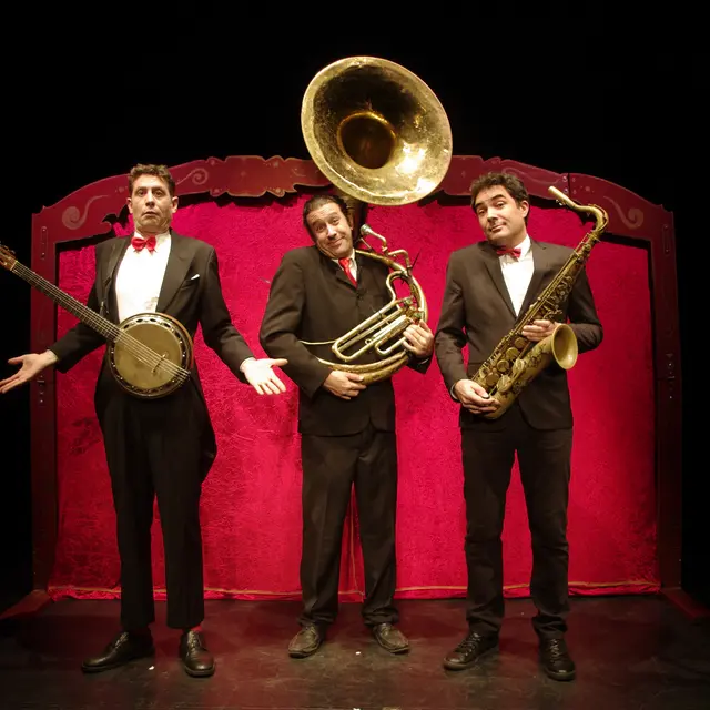 Trio swing décoiffé et décoiffant de clowns musiciens Oum Tcha, c’est du swing jazz des années 30, des standards de la chanson américaine revisités, avec un bon grain de folie et de joie communicative. Ces trois-là n’en sont pas à leur coup d’essai, et ils raffolent pardessus tout d’embarquer le public dans leurs élucubrations démentielles. Chaque concert reste un moment totalement improvisé et unique. Une guitare manouche, un saxo jazz, un tuba d’orchestre, des voix d’opérettes, du scat, de la bonne humeur, tout cela réuni pour un concert revigorant qui donne le pep’s et le sourire !