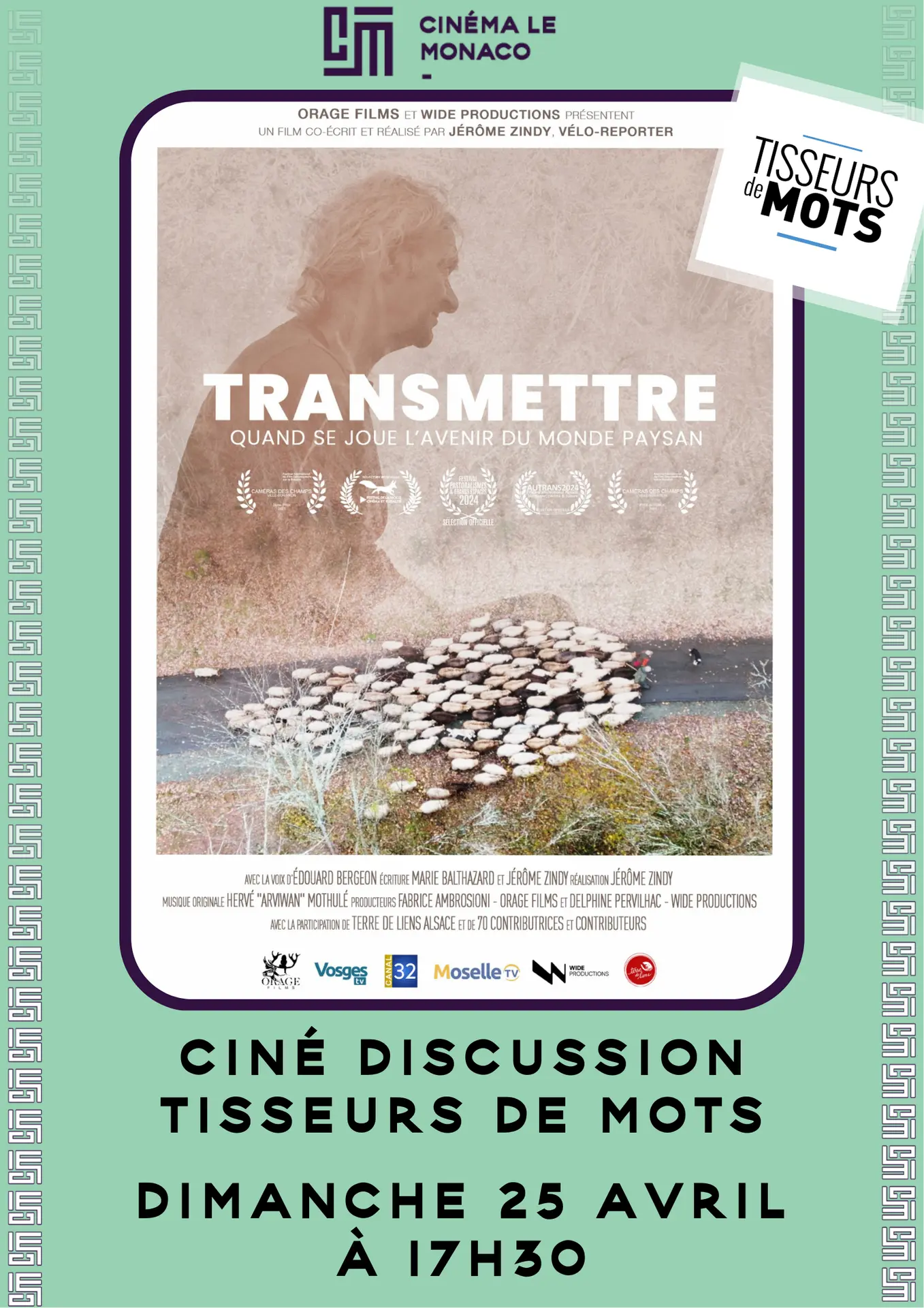 Ciné discussion avec l'association Tisseurs de mots autour du film documentaire Transmettre, sur les thèmes de la solidarité et de l'agriculture
