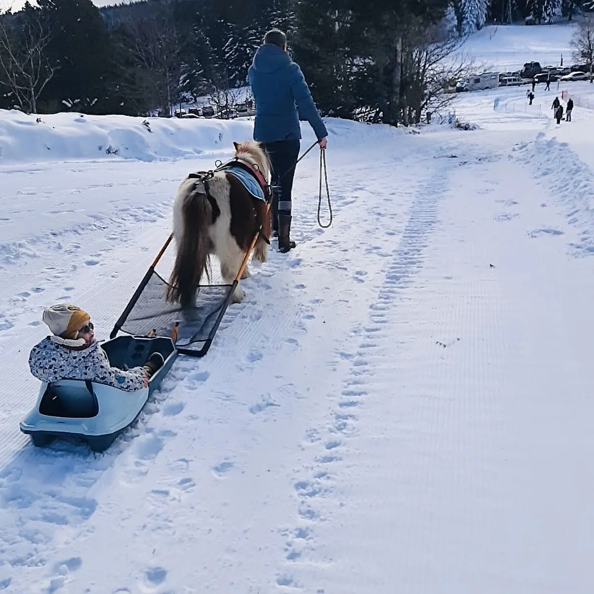 Le poney luge est une activité ludique qui consiste à se faire tracter en luge par un poney !