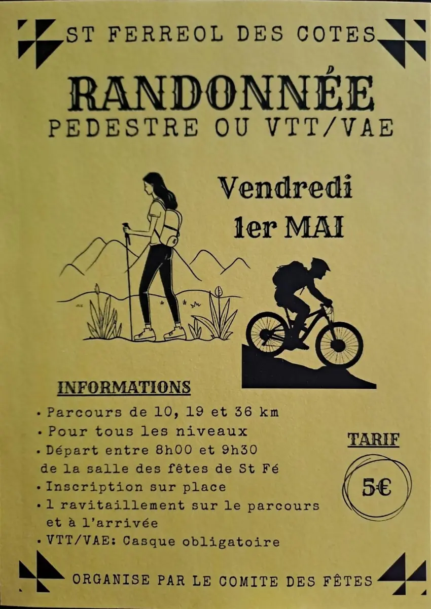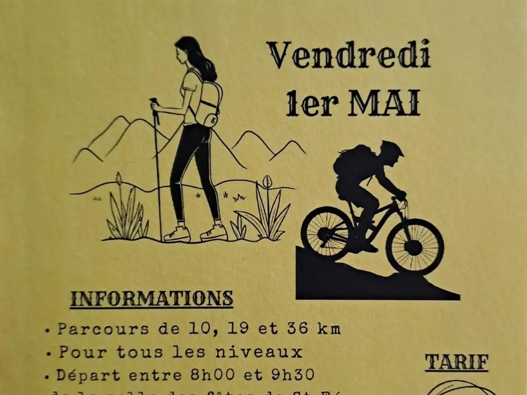 3 parcours de randonnée : 10, 19 et 36 km Ravitaillement sur le parcours et à l'arrivée